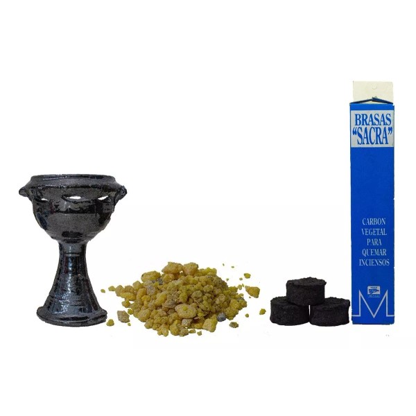 Incluye 100 gr de copal puro en lágrima y 10 carbones de brasa sacra y para que inicies quemando tus propios inciensos.