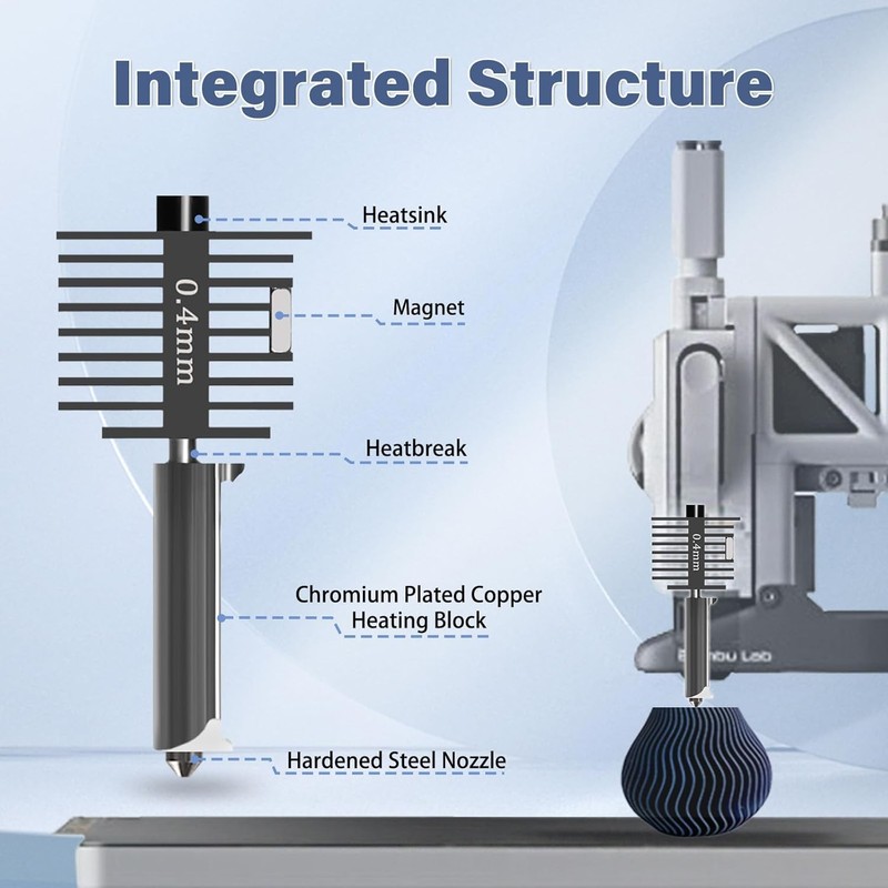 - Compatible: The Hotend kit is compatible with Bambu Lab A1/A1 Mini 3D printers. Package Include: 1 X 0.2mm Hotend Kit, 1X0.2mm,1X0.4mm, 1X0.6mm,1X0.8mm (Hardened Nozzle), 1 X Wrench, 2 X Silicone Cover Sock