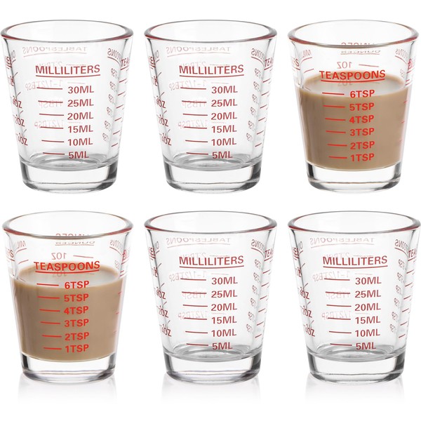SAIAOKJ Shot Glasses Measuring Cup Set 6 Pack Espresso Shot Glasses Liquid Heavy Glass 26-Incremental Measurement 1 OZ,2 TBS,6 TSP,30 ML Kitchen Tools(Red)