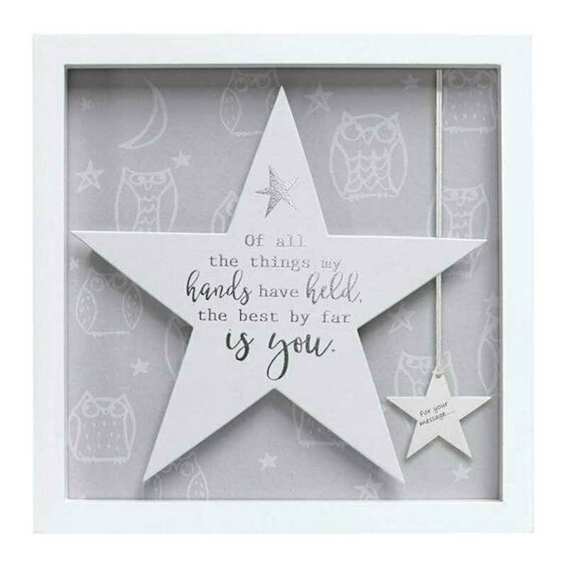 - With subtle colours and enchanting designs these frames have eye catching silver foil lettering and a hanging star for adding personalisation.