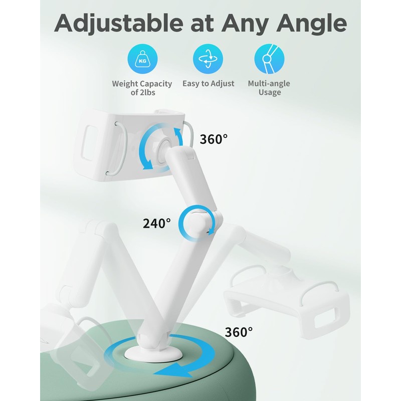 - Dual-Axis Design The kindle Colorsoft holder support arm has a dual-axis design that enables the bottom axis to rotate 360, the middle axis to rotate 240, and the clamp to rotate 360, allowing users to adjust the angle according to their needs, so the phone stand can accommodate different usage scenarios, whether sitting, standing, or lying down.