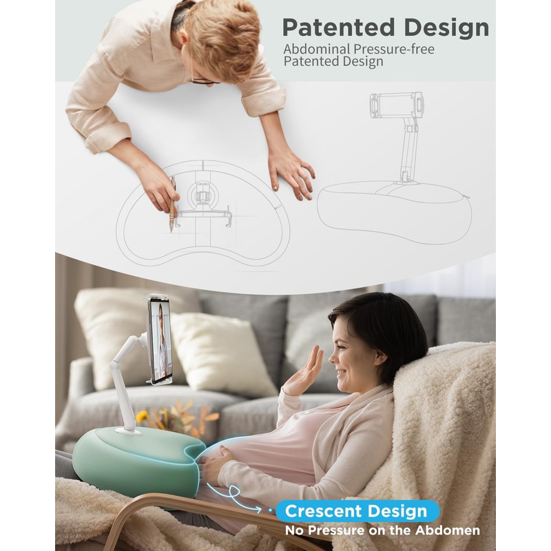 - Crescent-shaped Ergonomic Design The crescent-shaped design of SAIJI tablet holder pillow conforms to the principles of ergonomics and fits snugly against your belly, providing a comfortable and soft experience.