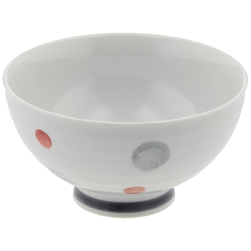 Saikai Pottery 74067 Arita Ware Rice Bowl, Medium, Gray Polka Dot, Red, Made in Japan