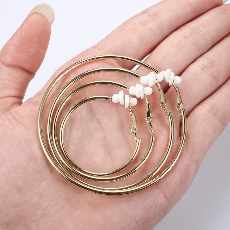 - 【HIGH QUALITY CLIP EARRINGS】Clip on earrings are made of high-quality alloy and AAA+ cubic zircon.smooth surface, lightweight and will not burden your ears too much, comfortable to wear. 4 pairs clip on hoop earrings inner diameter: 30/40/50/60mm.