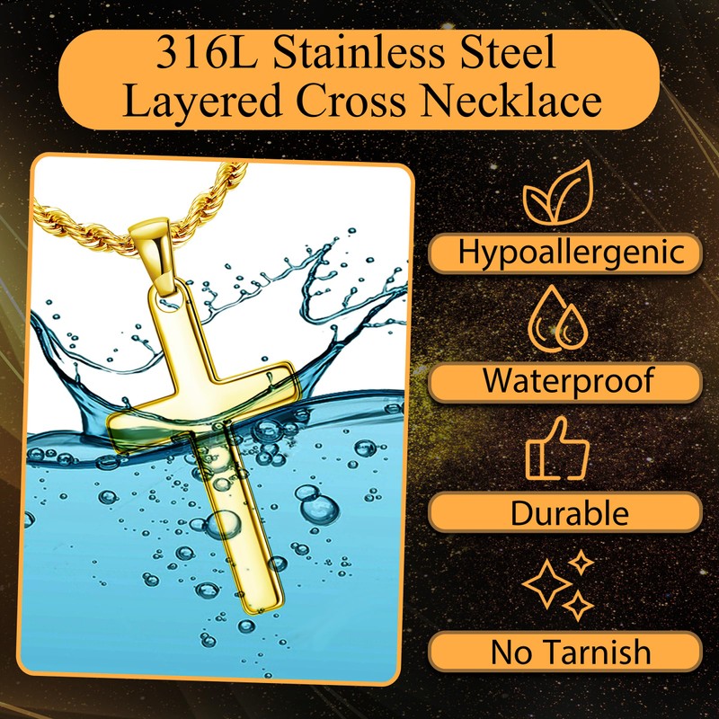 - 【Stainless Steel Necklace】:Crafted from 316L stainless steel, our cross chain for men is built to last. Hypoallergenic, waterproof, and resistant to fading, it ensures lasting beauty without causing skin irritation. Expertly polished for a smooth finish, it offers comfort whether worn day or night, during showers, sleep, or workouts.
