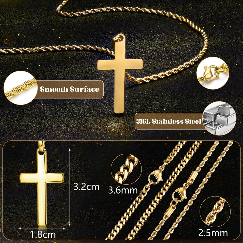 - 【Cross Chain Size】: Men's cross necklace is available in various sizes: 16"/18", 18"/20", 20"/22", 22"/24 ", Cuban chain width: 3.5mm, snake chain width: 4mm,catering to men of different ages and preferences.