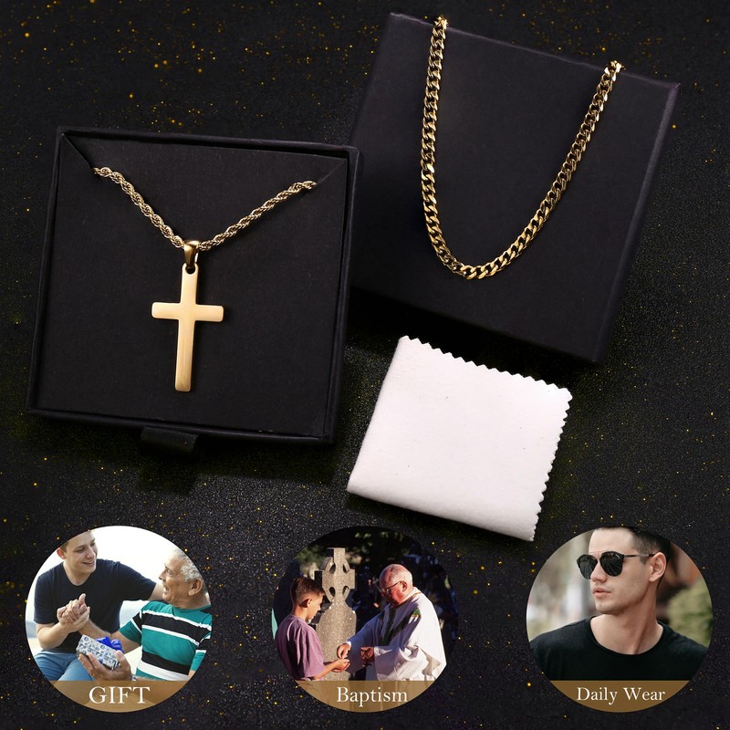 - 【Great Gift】:Layered cross necklace packaged in a black box accompanied by a Polishing cloth, cross necklace is meticulously presented to maintain its brilliance.An ideal gift for your brother or father, it's perfect for birthdays, Christian baptisms, Good Friday, anniversaries, and Christmas celebrations.