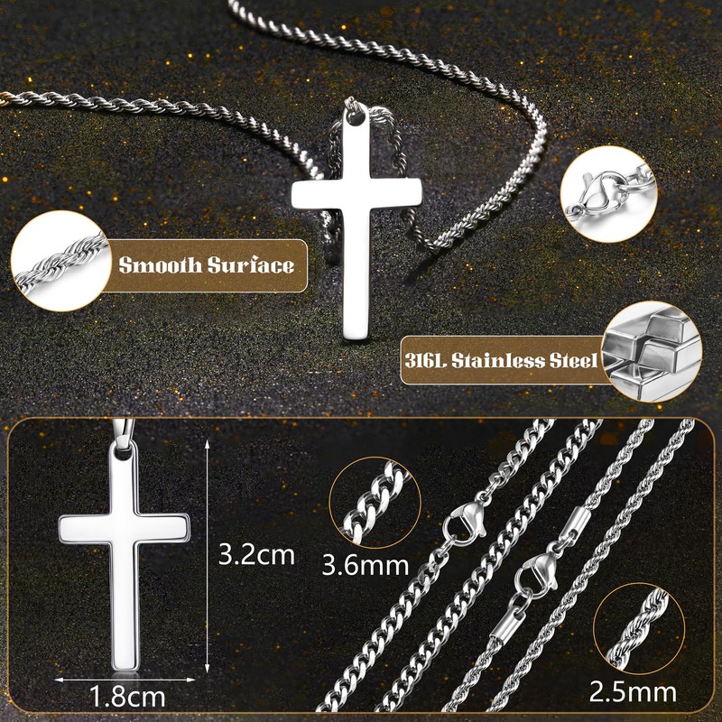 - 【Stainless Steel Necklace】:Crafted from 316L stainless steel, our cross chain for men is built to last. Hypoallergenic, waterproof, and resistant to fading, it ensures lasting beauty without causing skin irritation. Expertly polished for a smooth finish, it offers comfort whether worn day or night, during showers, sleep, or workouts.
