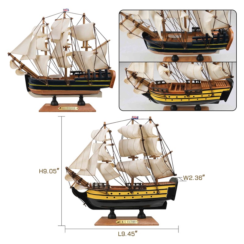 SAILINGSTORY Wooden Model Ships Sailing Ship Model Sailboat Decor Endeavour, Victory 9.5" Set of 2 Pack