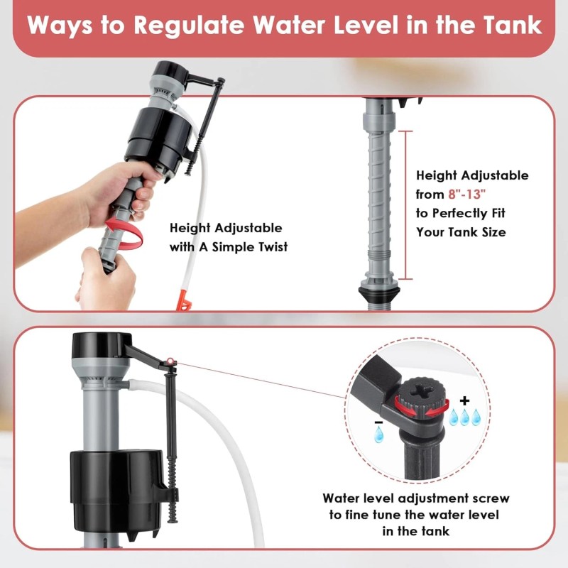 - Water Efficiency: our fill valve replacement kit is designed to be highly efficient, helping you save water; It ensures that your toilet tank fills up quickly and stops at the right level without any leaks or wastage