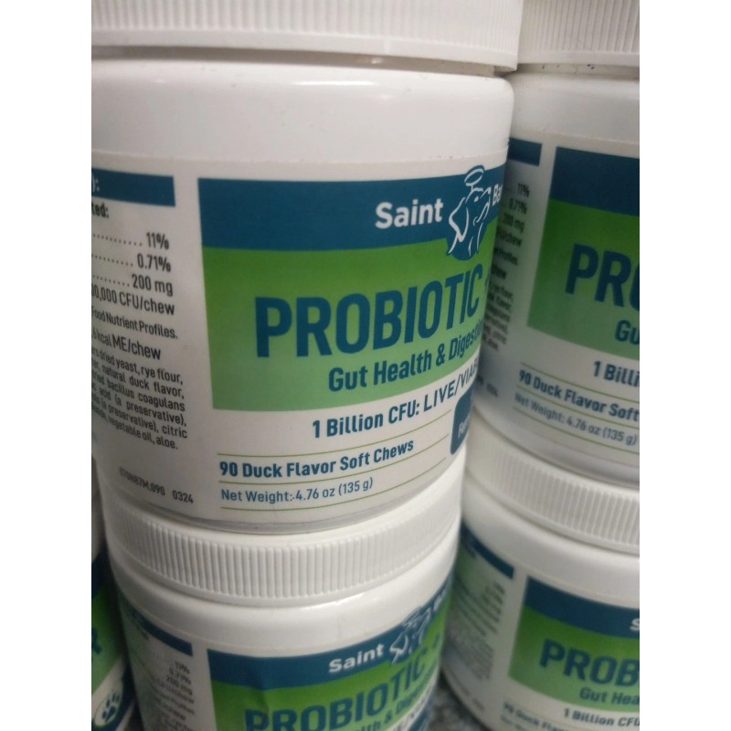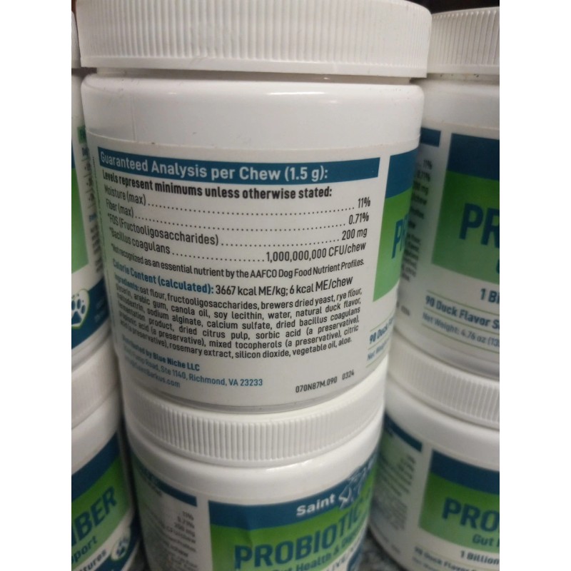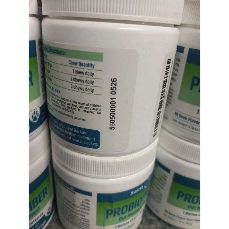 Saint Barkus 6x NEW Saint Barkus Probiotic + Fiber 540 Duck Flavor Chews 05/26 - 90/container