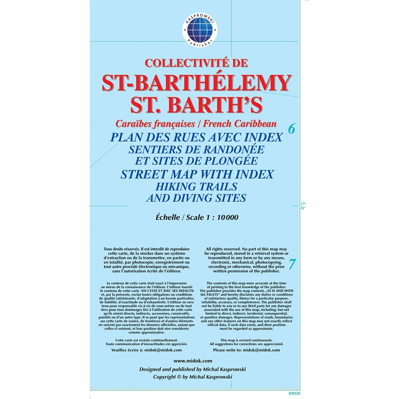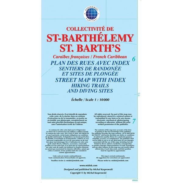 Saint-Barthélemy (St. Barth's) Street Map with Index, Hiking Trails and Diving Sites
