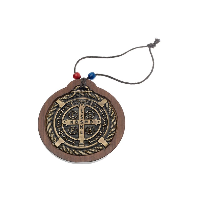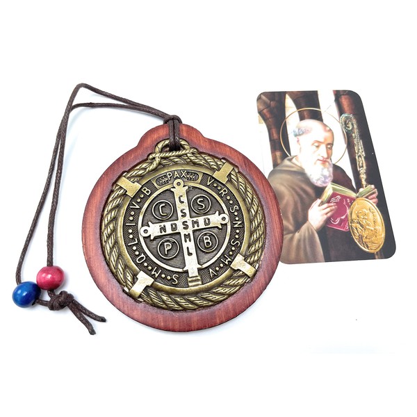 Saint Benedict Brass Tone Medal with wallet Size Prayer Card for Car Rear View Mirror protection or Home Blessing Charm/Medalla De San Benito Para Espejo Retrovisor o Para Bendicion del hogar