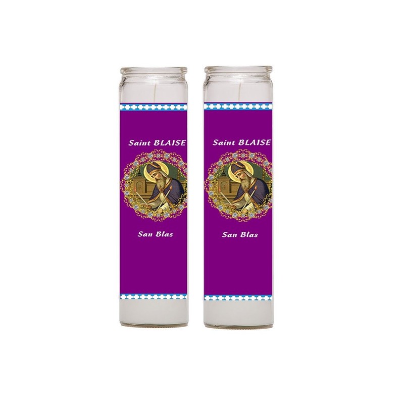 Saint Blaise Patron of Those with Throat Ailments Set of 2 Prayer Candles with Prayer in Back