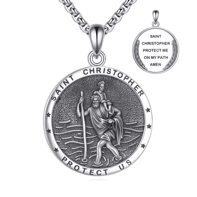 Saint Christopher Necklace for Men Women 925 Sterling Silver Patronus Medal Amulet Jewelry Gifts