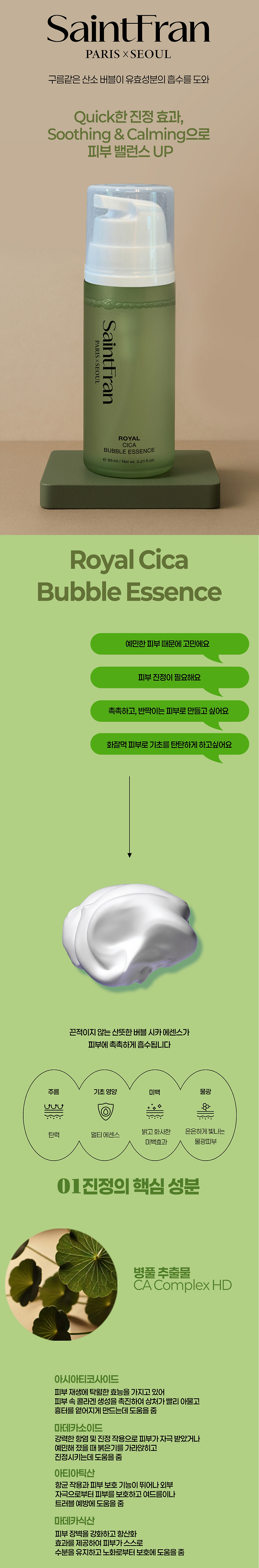 [Saint Fran] Royal Cica Bubble Essence 95ml / [세인트프랑] 로얄 시카 버블 에센스 95ml