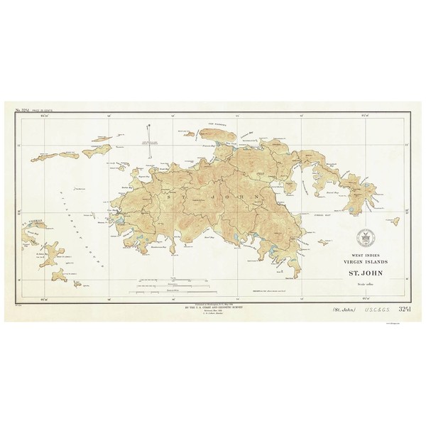 Saint John - 1934 Virgin Islands Topographical Map Reprint - Atlantic Harbors 3241