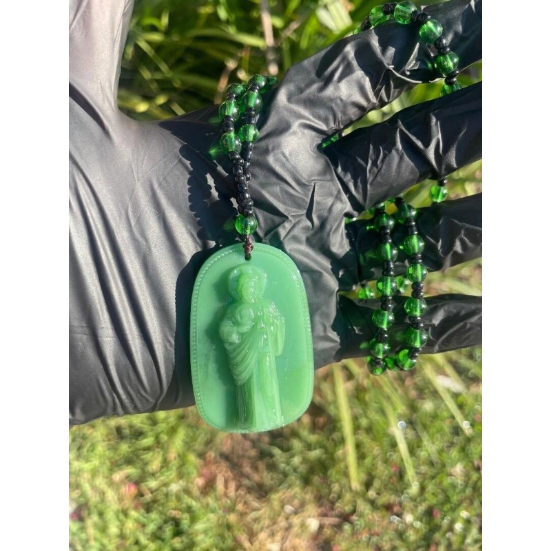 Saint Jude Green Rosary Necklace San Judas Tadeo Escapulario De Jade