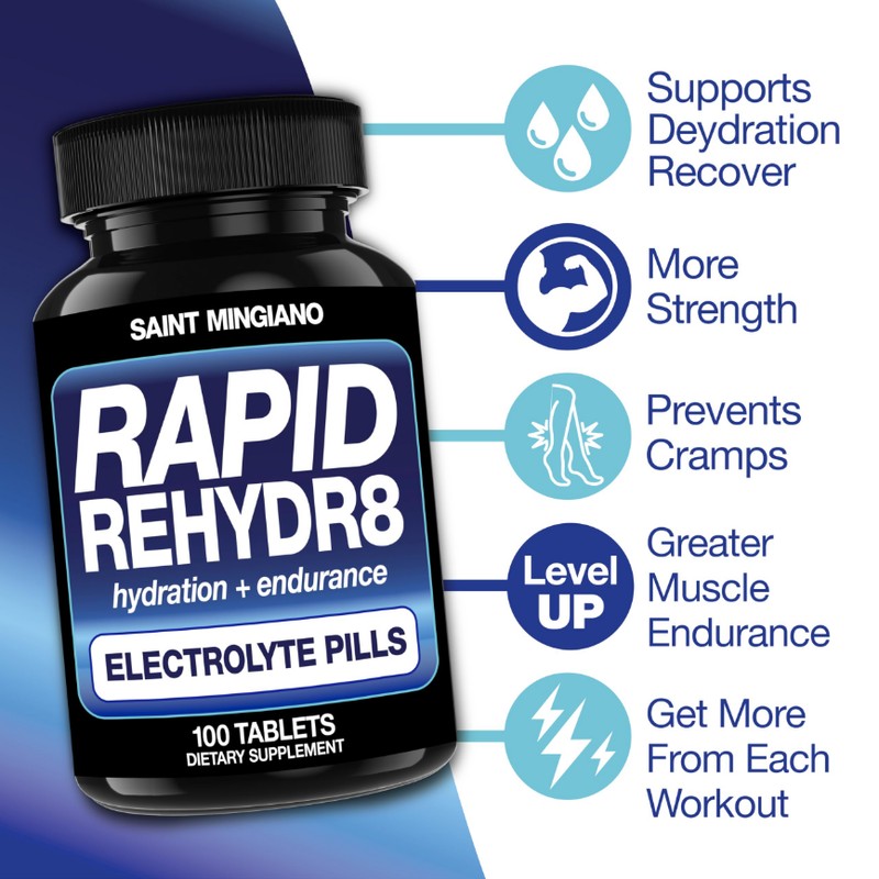 Saint Mingiano Rapid Rehydr8 Electrolyte Tablets 100 Capsules - with - Uric Acid Flush for Gout Support -120 Capsules