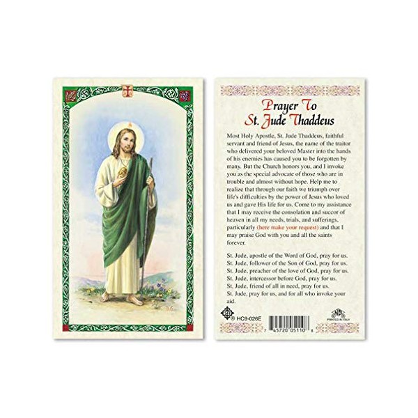 Saint St. Jude Thaddeus Laminated Prayer Cards - Pack of 25-