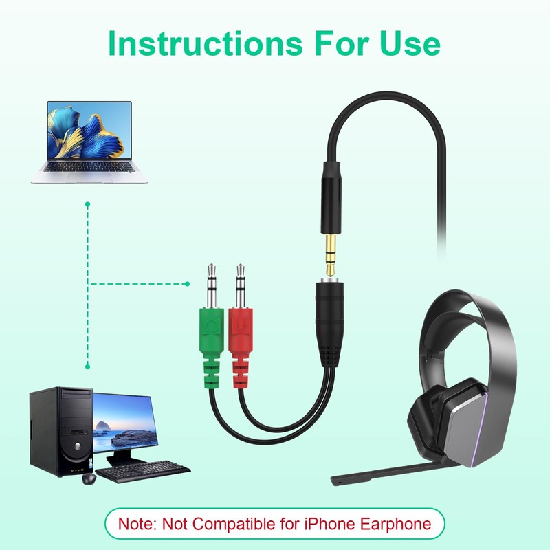 - 2 in 1 adapter cord, if the microphone is not working, this cable will help you solve this problem when playing computer games and enable you to communicate with teammates in real-time during the game.