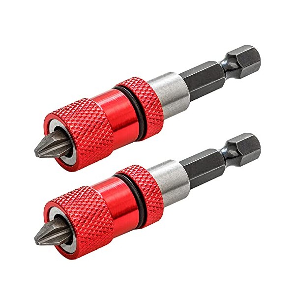 Saipor 2pcs Adjustable Screw Depth Screwdriver Bit Holder Magnetic Steel Screwdriver Drywall Bit 1/4 Inch Hex Shank with S2 Phillips 2 Screw Driver Bits