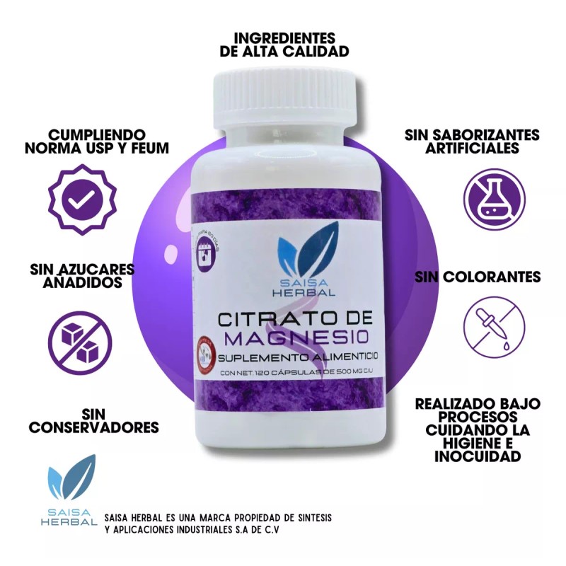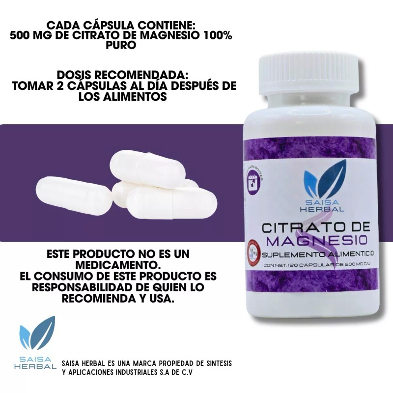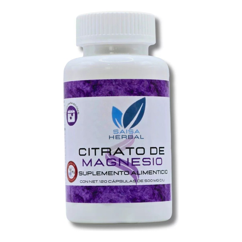 SAISA HERBAL Citrato De Magnesio Puro Con 120 Cápsulas De 500 Mg C/u.