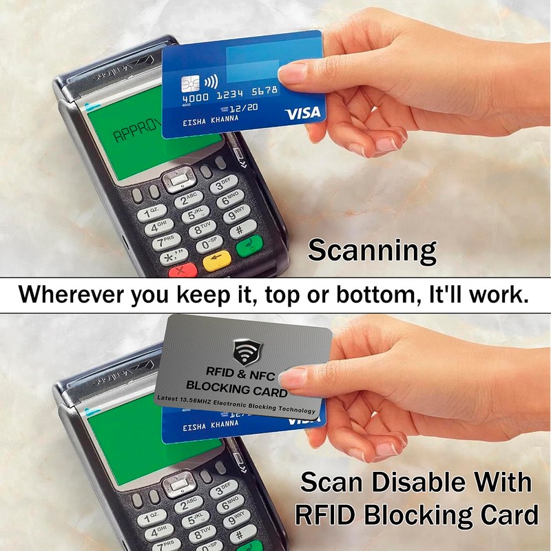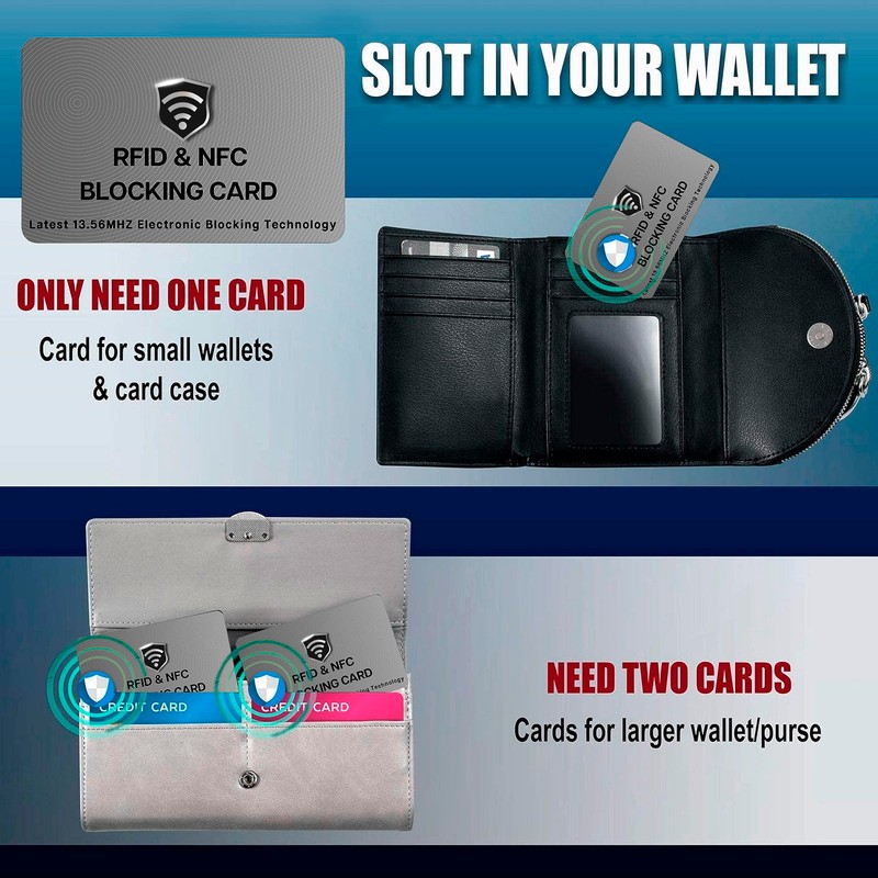 - SECURE YOUR WALLET FROM e-PICKPOCKETING: Prevent potential identity and financial theft through your contactless cards. Don’t become a victim e-theft in our growing contactless society. This is the simplest and most effective prevention solution! Block all RFID and NFC signal to secure your details and have peace of mind.