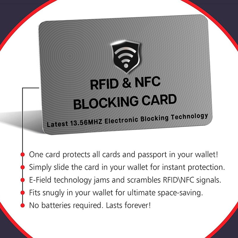 - SECURE YOUR WALLET FROM e-PICKPOCKETING: Prevent potential identity and financial theft through your contactless cards. Don’t become a victim e-theft in our growing contactless society. This is the simplest and most effective prevention solution! Block all RFID and NFC signal to secure your details and have peace of mind.