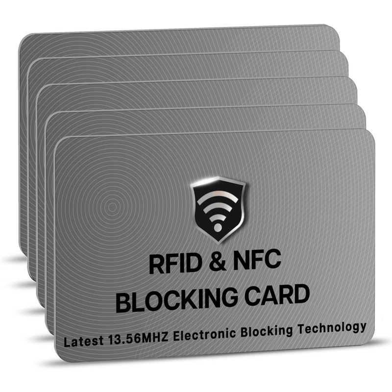 SaiTech IT 5 Pack RFID Blocking Cards, One Card Protects Entire Wallet Purse for Men & Women, NFC Contactless Bank Debit Credit Card Protector ID ATM Guard Card – Grey