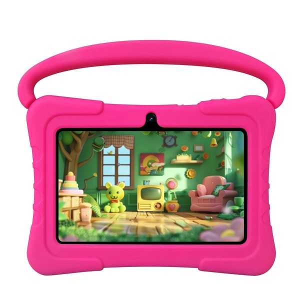 SAIWAN 7 inch Kids Tablet with Shockproof Case, 1GB RAM 16GB ROM, Android Toddler Tablet with Bluetooth, WiFi, GMS, Parental Control, Educational, Games(Pink)