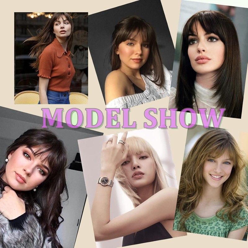 - Perfectly Shape Your Face: Wispy bangs & French bangs. The length and width are perfect for different face shapes. Wispy bangs with hair temples , it looks very cute and nifty.This hairstyle is thin and gives a refreshing feel and is the most popular see-through bangs hairpin. French bangs have enough thickness to cover your forehead without worrying about wispy. The hair temples on both sides can correct different facial contours. You can also trim it when it is too long or not needed.