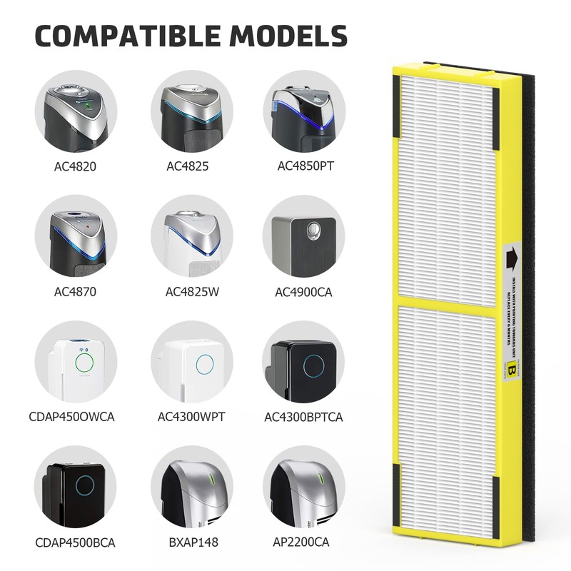 - PACKAGE INCLUDED: FLT4825 HEPA filter B replacement set includes 4 HEPA filters and 8 carbon filters, We recommend you to change the filter every 6-8 months for better filtration effect.
