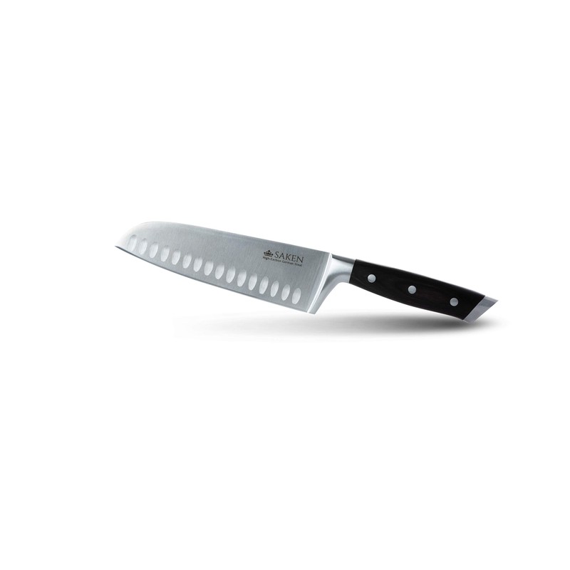 SAKEN Santoku Knife - 7-Inch Japanese Chef Knife with High-Carbon German Steel Blade, Granton Edge, and Ergonomic Handle - Multipurpose Kitchen Knife for Mincing, Slicing, and Dicing