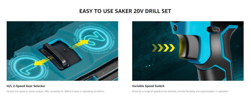 【GOOD ITEM】Saker 20v drill sets can be given to your friends or families on the occasions such as Christmas, Valentine's Day, Father's Day, Mother's Day, Thanksgiving Day, birthdays, housewarmings, graduations, wedding registries, and anniversaries, providing practicality and versatility for DIY enthusiasts and homeowners.