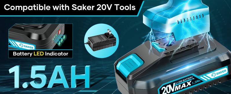 【RECHARGEABLE BATTERY WITH LED LIGHT】The Saker cordless drill features a rechargeable 20V 1.5Ah lithium-ion battery backed by a high-capacity charger that can be fully charged in just 2 hours. This ensures extended use without the need for frequent battery replacement. The kit also includes a battery indicator to keep you informed of battery status.