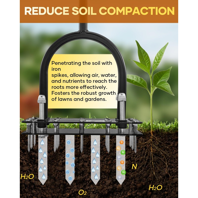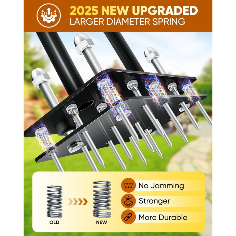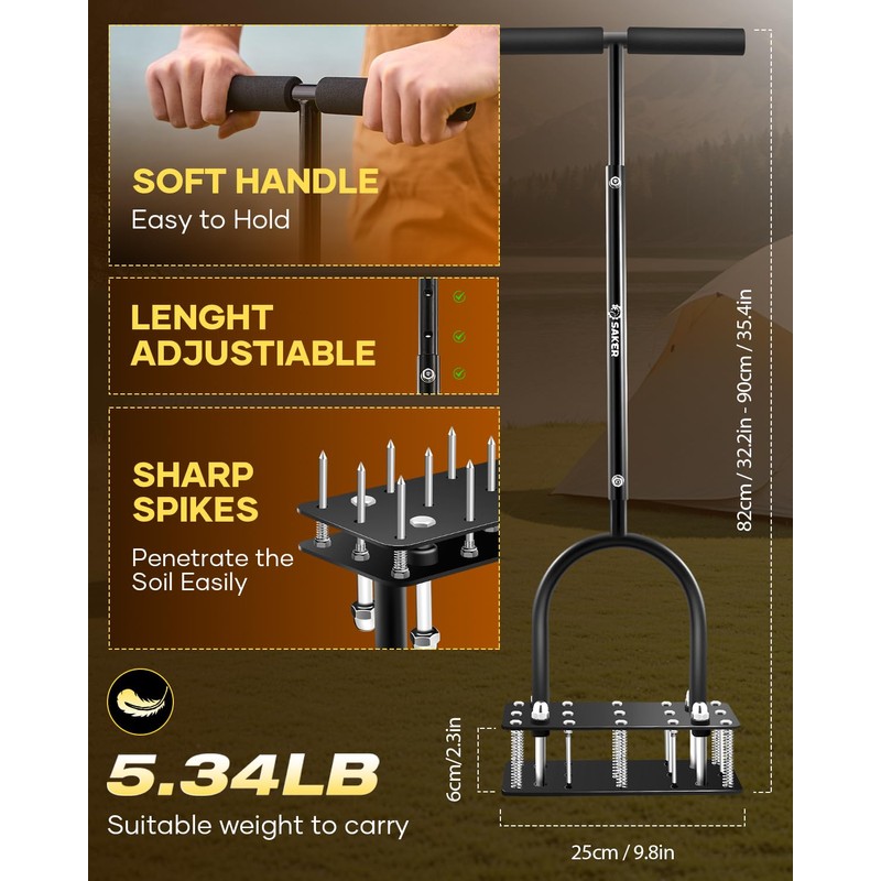 Saker Lawn Aerator Tool, Lawn Aerator with 15 Iron Spikes, Automatic Leaf and Dirt Cleaning with Spring-Loaded Design, Metal Manual Aerator for Loosening Soil Aerating Patio, Yard, Garden Black