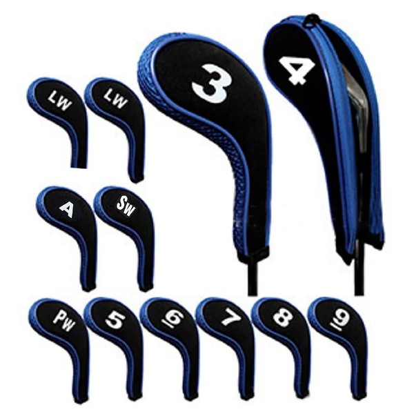 Saki&Masa Iron Cover Golf Headcover Set with Counted Counts Printed Zipper Long Neck 12 Pieces (Blue)