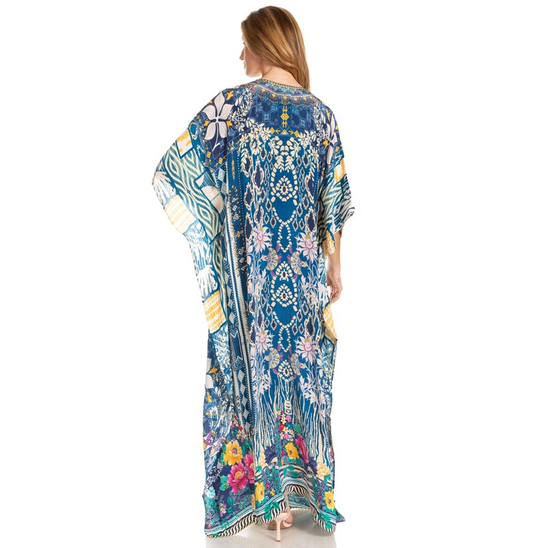 - This caftan dress is very lightweight, and elegant that it can be worn a multiple of different ways. The color combinations are unique. Can be worn as a dress, coverup at the beach, or for parties and nights out during the summertime! One Of A Kind: This garment is crafted in small batches by artisans. Made with the best materials available. Satisfaction Guaranteed : At Sakkas our designing team and collaborators are committed to improve products continuously to bring you quality garments.