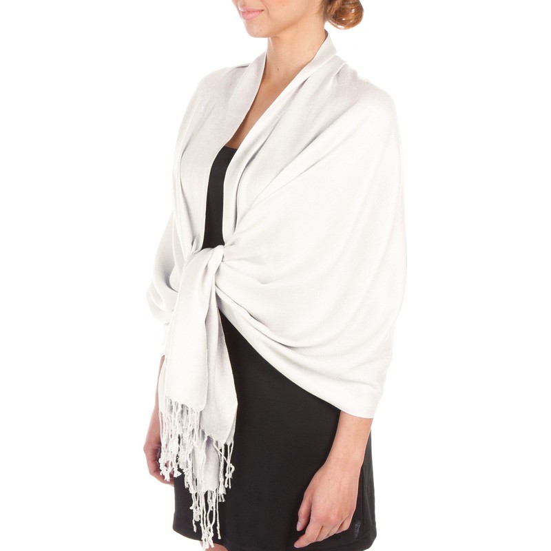 Sakkas Silky Soft Pashmina Feel Scarf / Stole - White