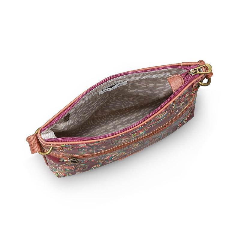 Sakroots Flat Crossbody in Coated Canvas with Adjustable Strap, Mulberry Treehouse