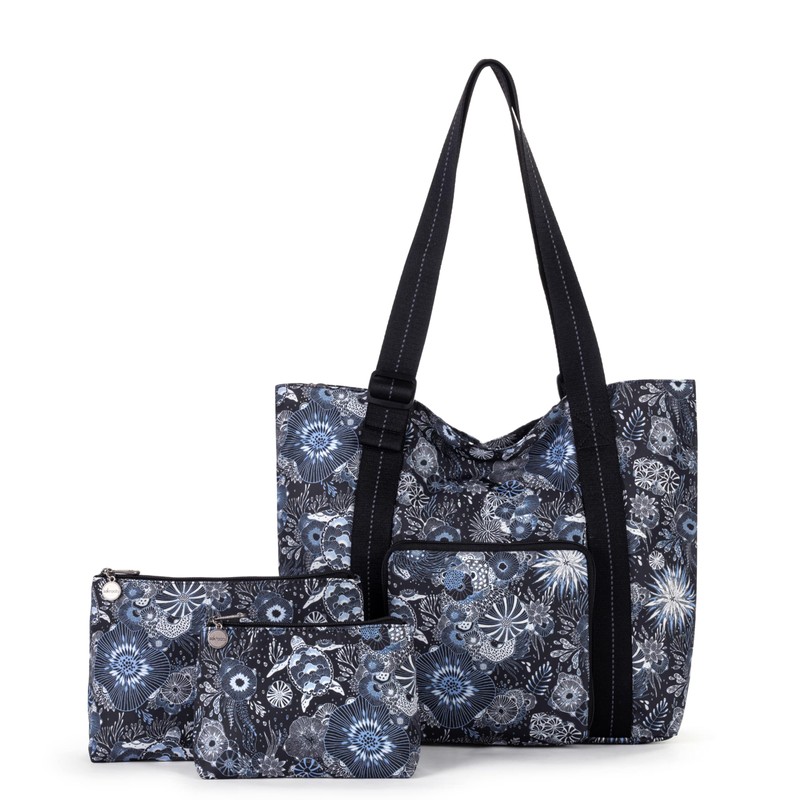 - STYLISH & SPACIOUS: Emblazoned with an exclusive print, Sakroots On the Go resort-ready, four-piece travel bundle features a rolling suitcase, a small & medium pouch, & a packable large tote that easily slides over any telescoping handle.