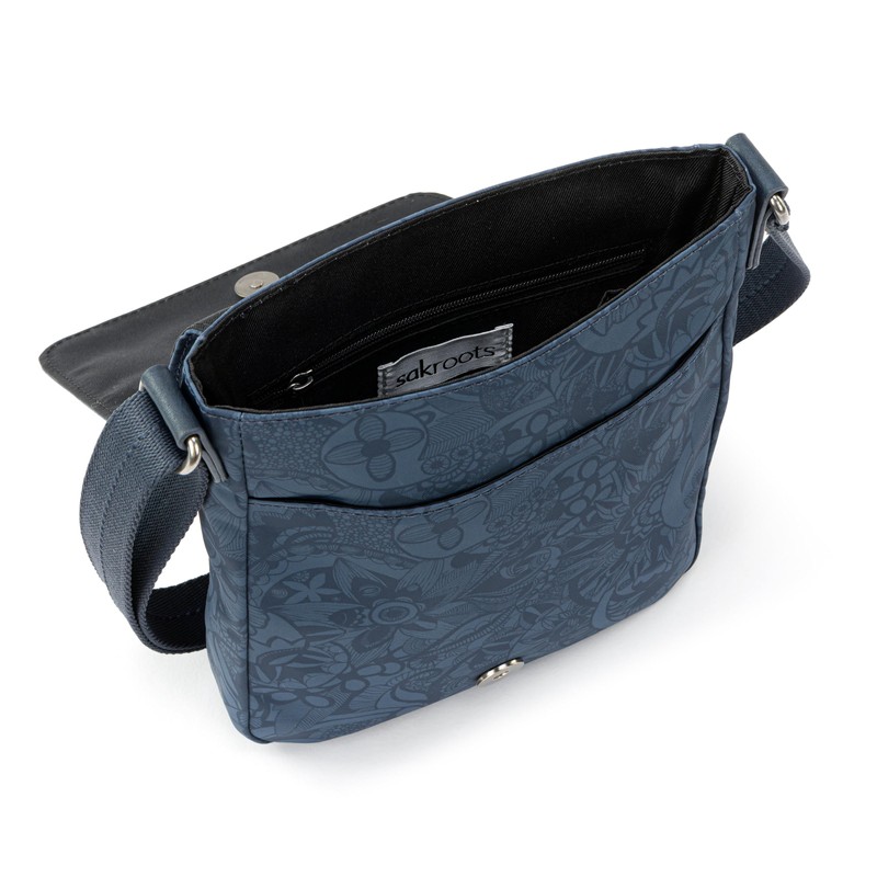 Sakroots On The Go Small Flap Messenger in Eco Twill, Adjustable Crossbody Strap, Indigo Spirit Desert