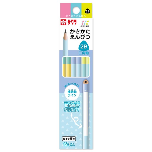 Sakura Crepas GE2B3-C Shikakata Pencil, Elementary School Stationery, 2B, Triangle, C, 12 Pieces