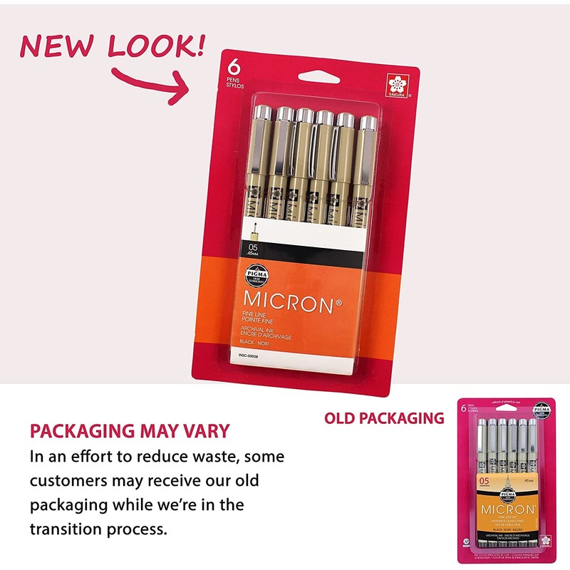 SAKURA Pigma Micron Fineliner Pens - Archival Black Ink Pens - Pens for Writing, Drawing, or Journaling - Black Ink - 05 Point Size - 6 Pack