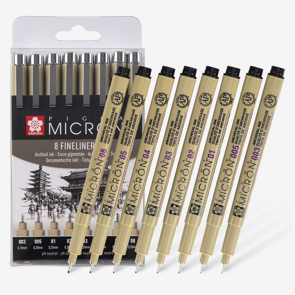SAKURA : Pigma : Micron Pen : Wallet : Set of 8 : Black