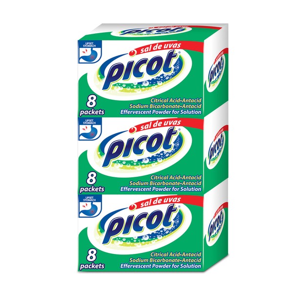 Sal de Uvas Picot, Effervescent Powder Solution, Antacid, 0.17 Oz, 3-Pack of 8 Packets, 3 Boxes.