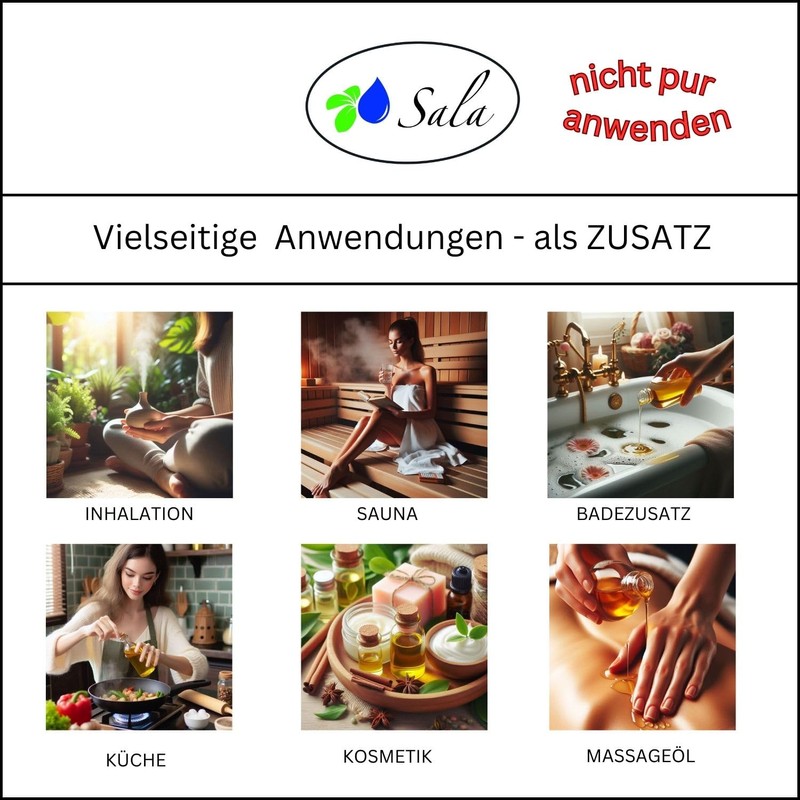 - Instructions for use: Essential oils are concentrated substances that must be used properly. Therefore, find out about the dilution or dosage recommended for the desired use, especially when using this product as an additive to cosmetic mixtures or the use as an aroma for food and drinks. The oil should not be taken undiluted.