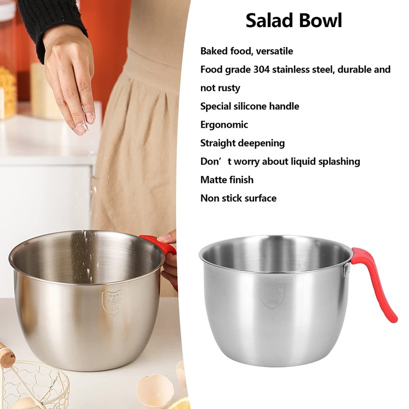 Salad Bowl, Stainless Steel Useful Splashproof Egg Beating Bowl with Handle for Kitchen for Restaurant for Home(#2)
