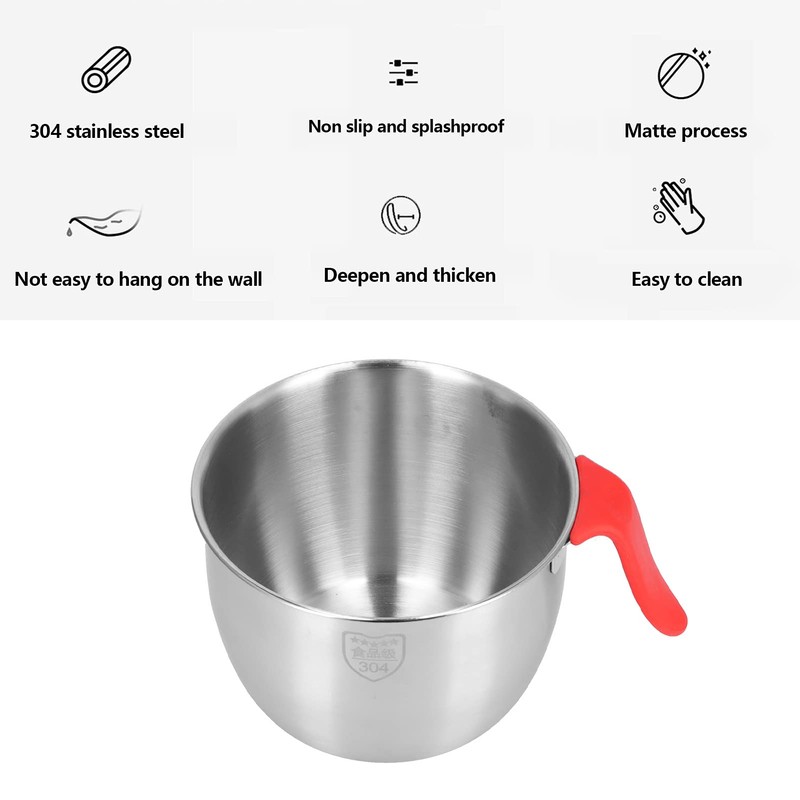 - PREMIUM MATERIAL: The mixing bowl is made of premium stainless steel, resist dents and proof, frosted finish, with silicone handle, safe to use.